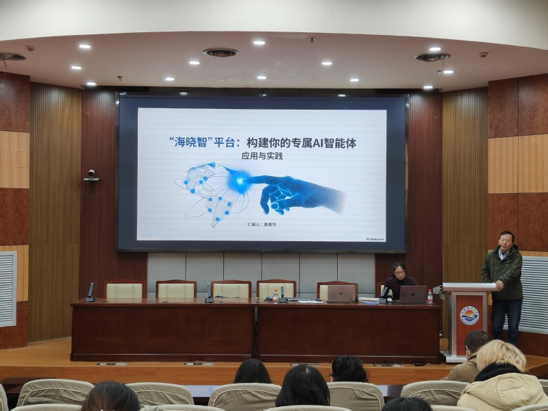 本次信息化服务周开设了专题讲座。12月2日,在行政楼137会议室易昌华、林成两位老师做了题为《人工智能时代下的信息化赋能工具利器使用:Hi Agent(海晓智)与一表通》的专题培训。两位老师结合实际案例现场演示了海晓智AI智能体在教学辅助、管理服务、科研助力等方面的功能和“一表通”在破解重复填报数据、优化业务流程、创建数据填报流程等方面的应用。与会的机关党委和保障和直属部门党委师生结合自身工作学习实际与两位教师进行了互动交流。